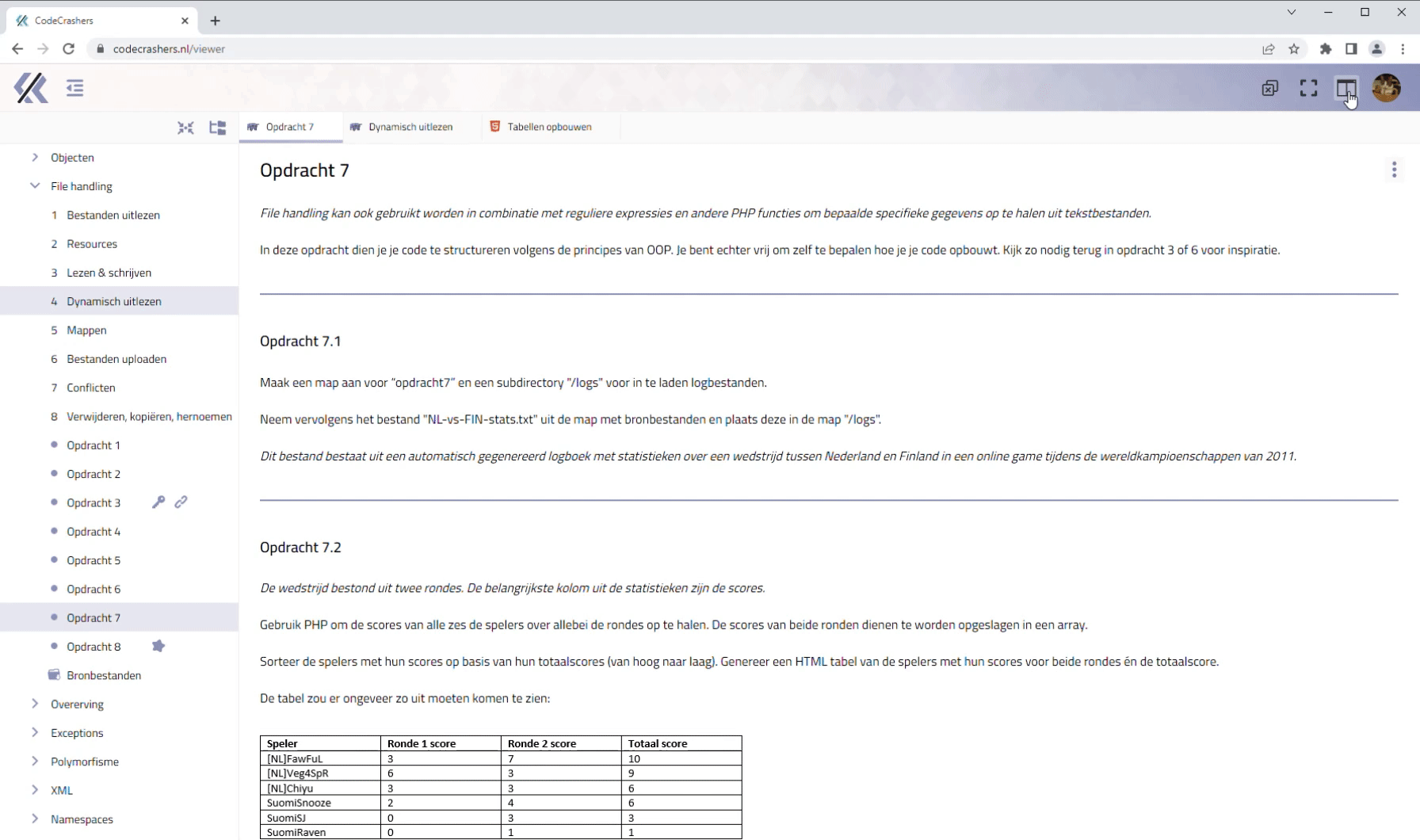 Studenten kunnen zelfs lesstof uit andere, eerder gevolgde, cursussen erbij pakken. Het is immers erg vervelend als je in de PHP cursus de opdracht krijgt om een HTML tabel te genereren en je vergeten bent hoe dat moet 😉.